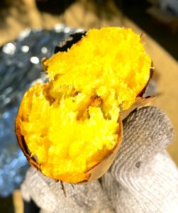 先日、収穫したサツマイモは焼き芋とスイートポテトに変身!